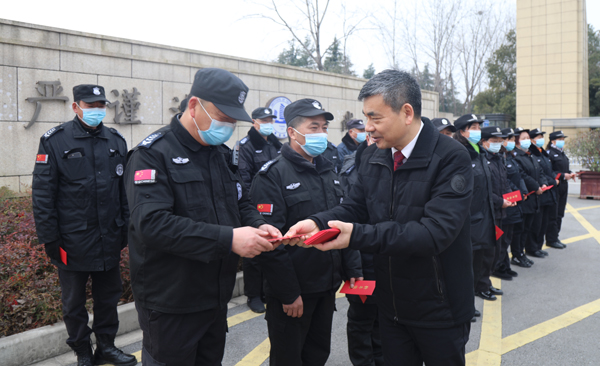 2月1日,农历壬寅虎年春节当天,校党委书记朱爱胜,副校长杨雪琴、强伟纲在党校办、党委宣传部、保卫处、学生处、后勤处等相关部门负责人的陪同下,走访慰问了春节期间仍坚守在工作岗位的教职员工和留校学生,为他们送上新春祝福。